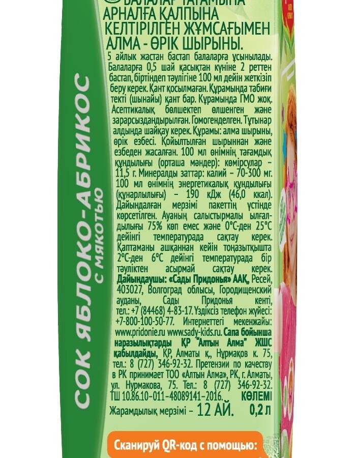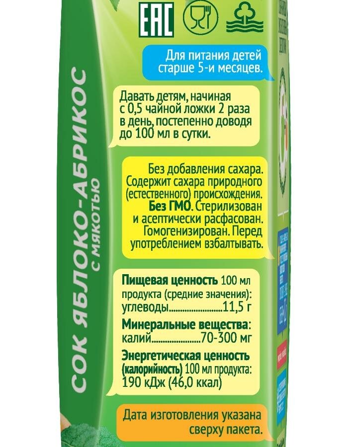 Сок детский Сады Придонья яблоко-абрикос с 5 месяцев 200 мл интересное: