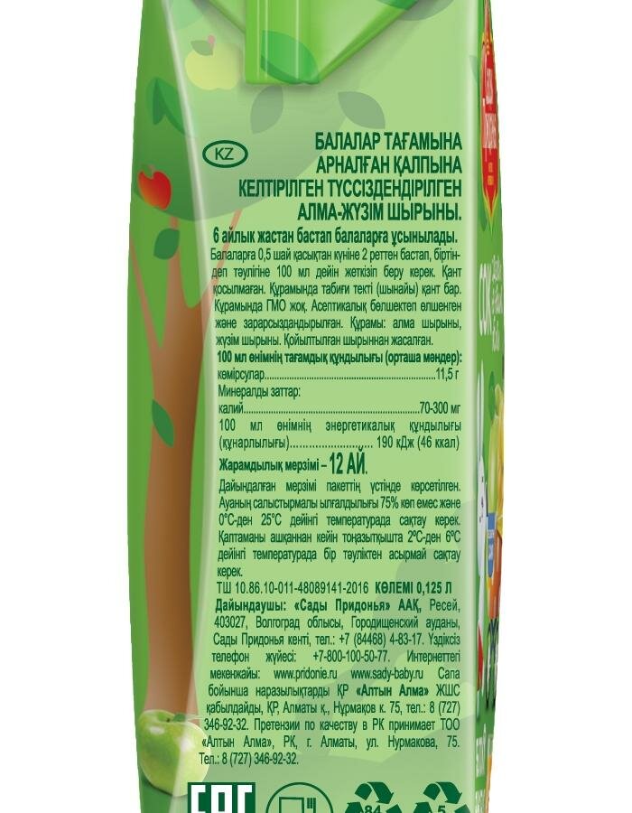 Сок Сады Придонья Зеленое яблоко (Tetra Pak), c 4 месяцев