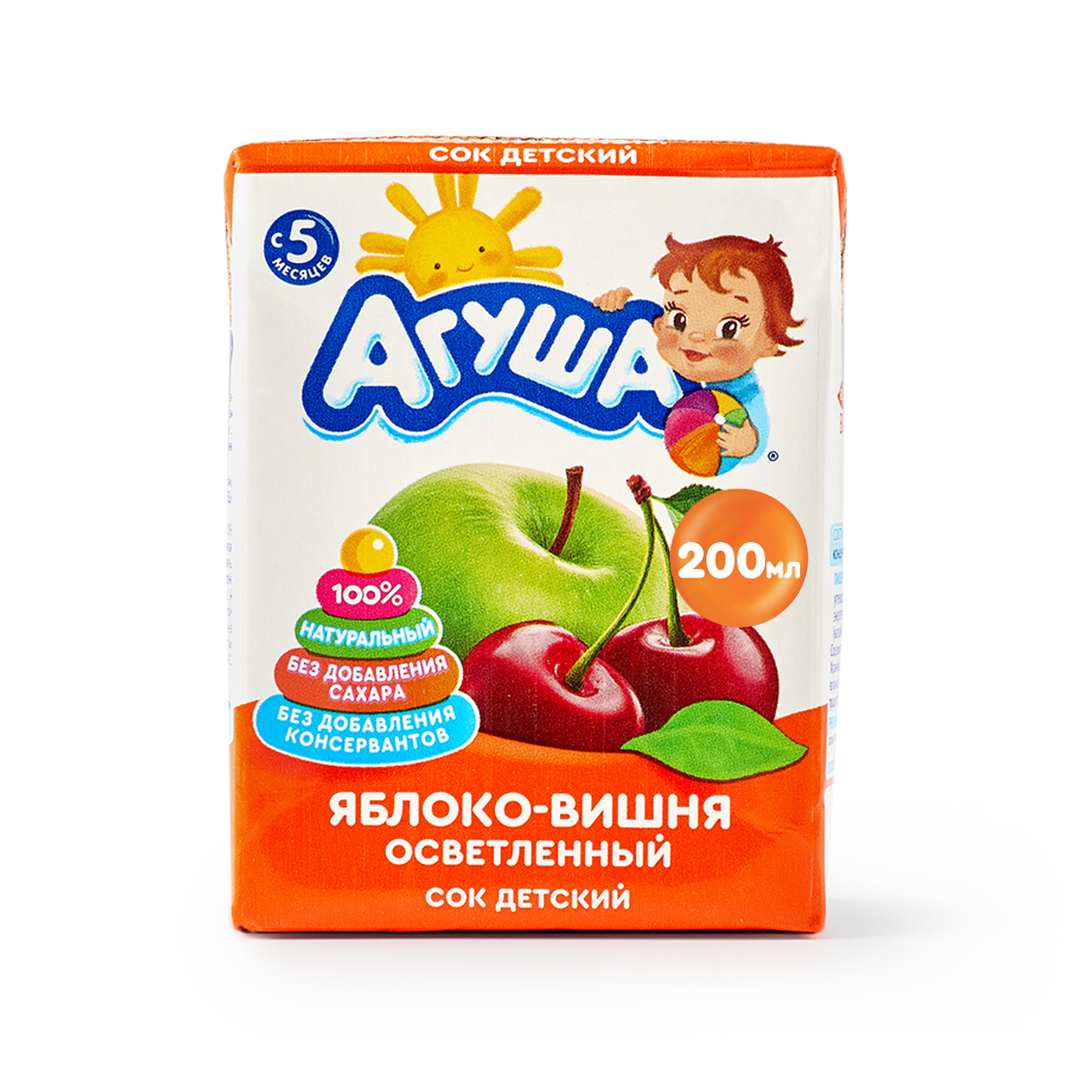 Сок осветленный Агуша Яблоко-вишня, с 5 месяцев/1шт
