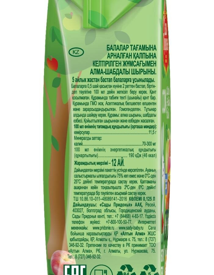 Сок Сады Придонья Зеленое яблоко (Tetra Pak), c 4 месяцев