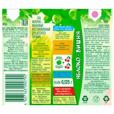 Сок сады придонья Яблоко, вишня, с 5 месяцев, 125мл интересное: