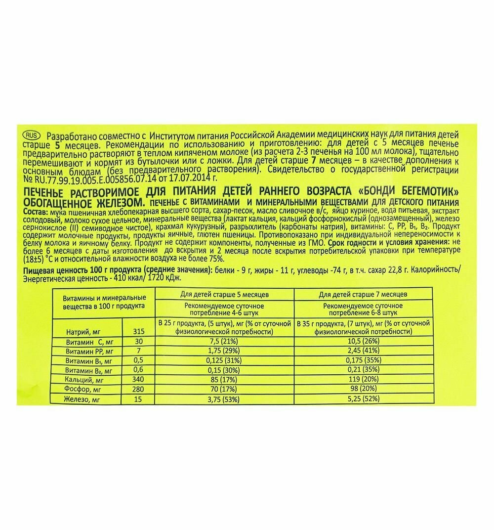 Печенье Бегемотик Бонди детское обогащенное железом 180 г интересное: