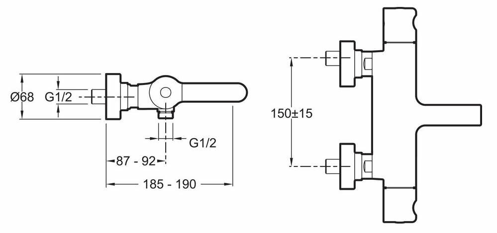 Смеситель для ванны и душа настенный термостатический Jacob Delafon SINGULIER E10870-CP