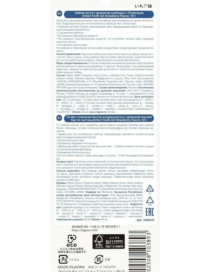 PIGEON Зубной гель детский для чистки молочных зубов, вкус клубника с 1,5 лет, туба 50 гр. интересное: