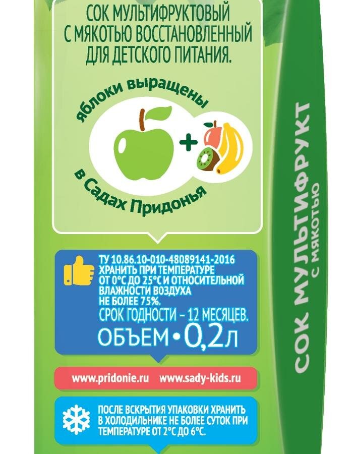 Купить Сок сады придонья Мультифрукт, с 12 месяцев, 200мл