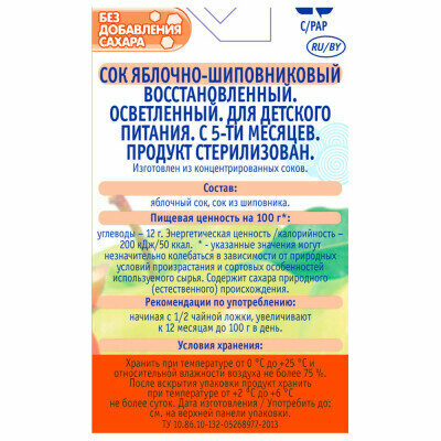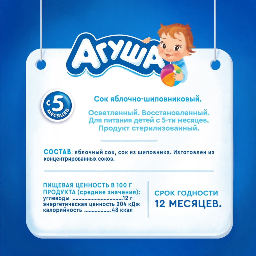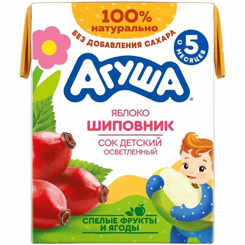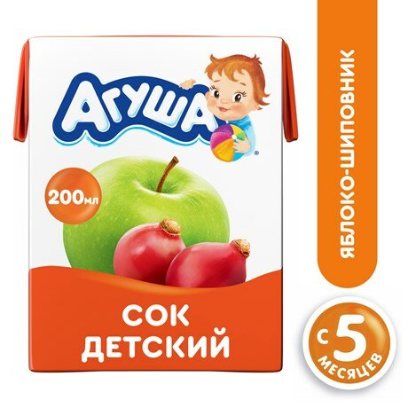 Сок осветленный Агуша Яблоко-шиповник (Tetra Pak), с 5 месяцев/1шт