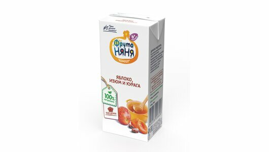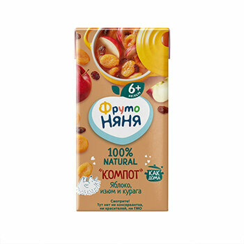 ФрутоНяня Компот из Яблок с Экстрактом Изюма и Кураги, неосветл. {с 6 мес} 0,2л