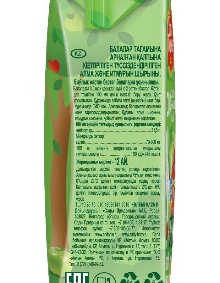 Сок Сады Придонья Зеленое яблоко (Tetra Pak), c 4 месяцев