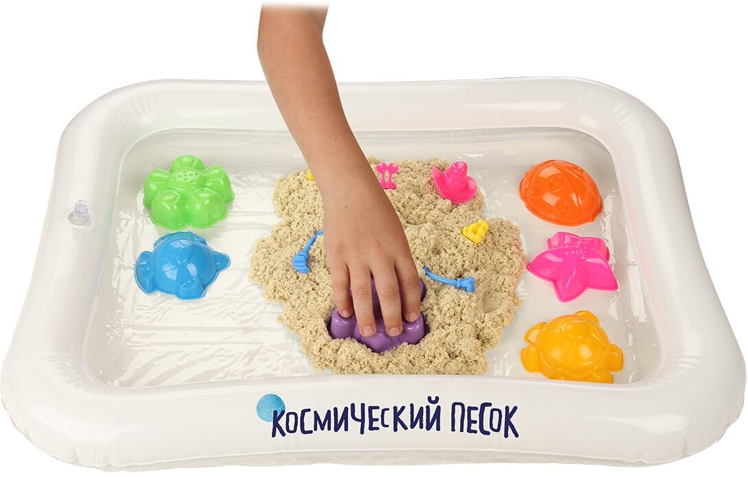 Кинетический песок Космический песок Набор с формочками и надувной песочницей, натуральный, 1 кг, картонная пачка
