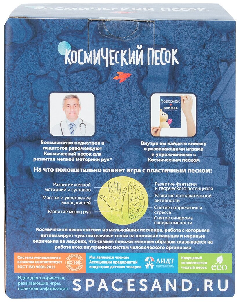 Космический песок классический в коробке, 1 кг + песочница + формочки Космический песок 1987280 .