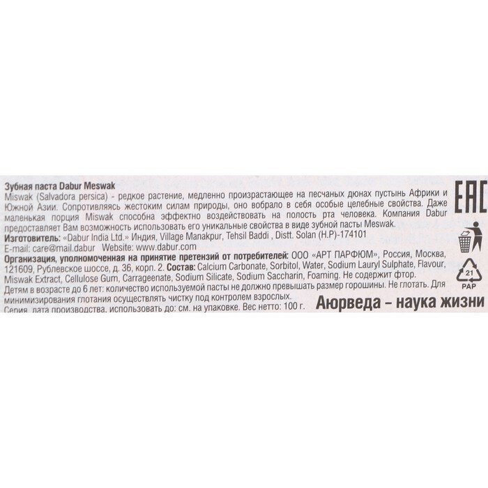 Зубная паста Dabur Meswak 100 гр. 1865430