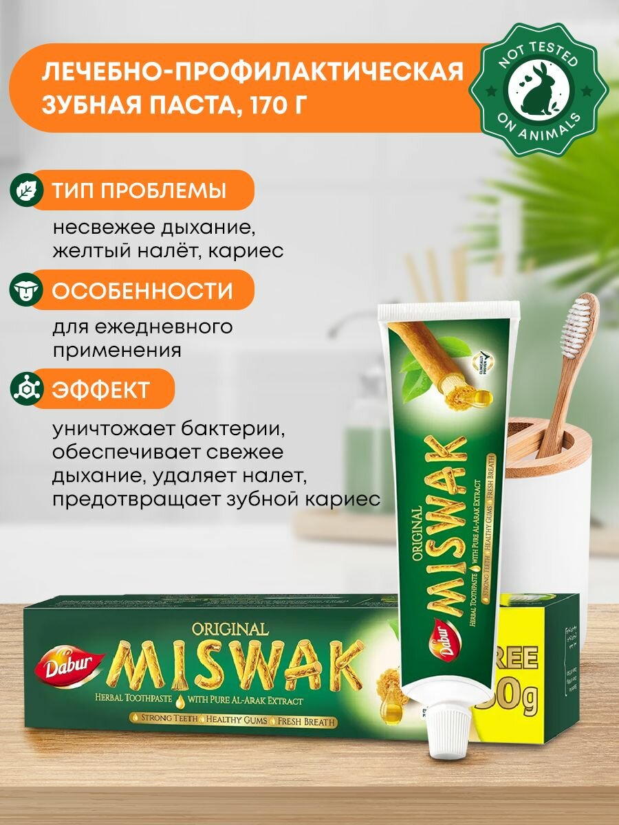 Аювердическая зубная паста Дабур Мисвак (Dabur Miswak) против кариеса и зубного камня, 120+50 г, большая упаковка