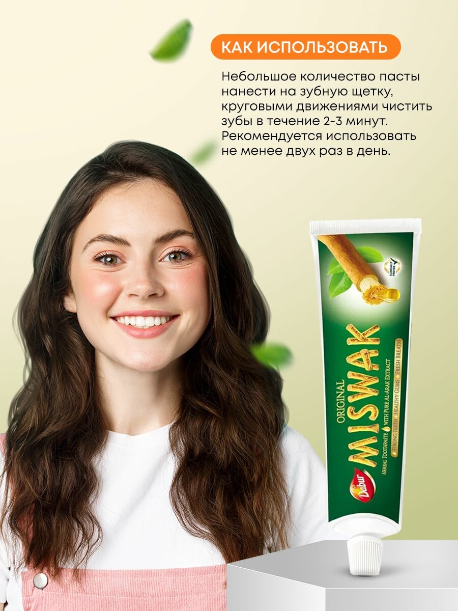 Зубная паста Dabur Miswak (Дабур Мисвак) 170гр Натуральная без фтора / Отбеливающая дентальная паста / гигиена за зубами и ротовой полостью