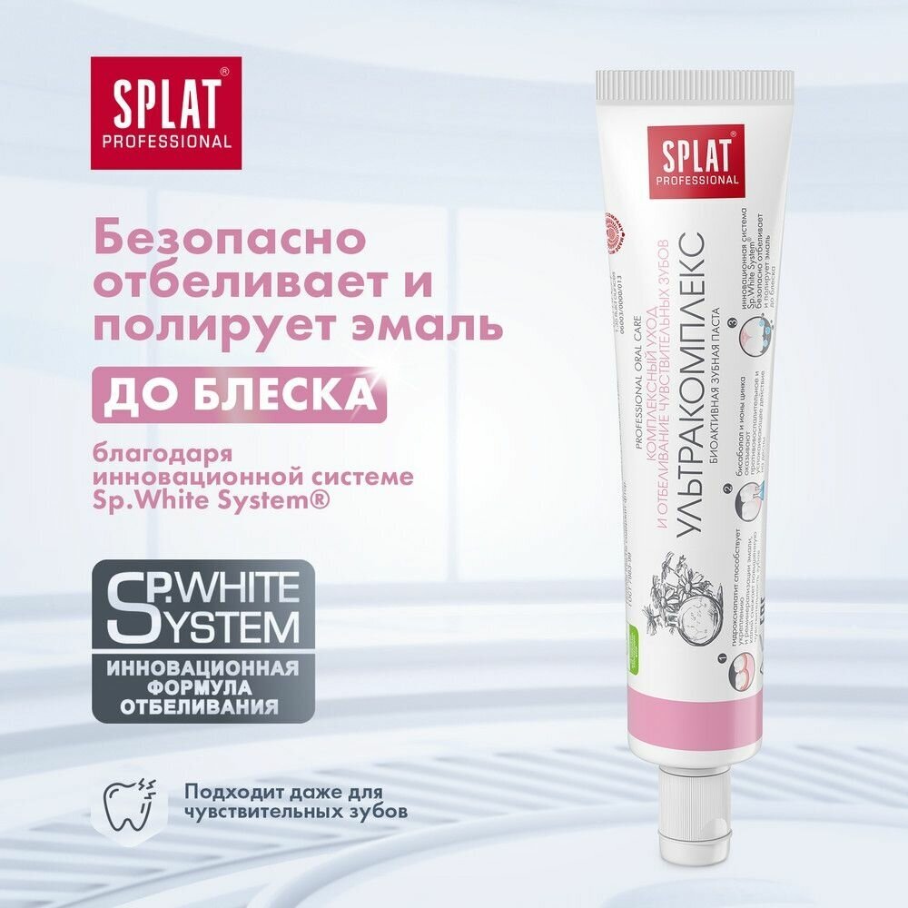 Зубная паста отбеливающая SPLAT Professional Ультракомплекс для чувствительных зубов, комплексный уход за полостью рта, 100 мл