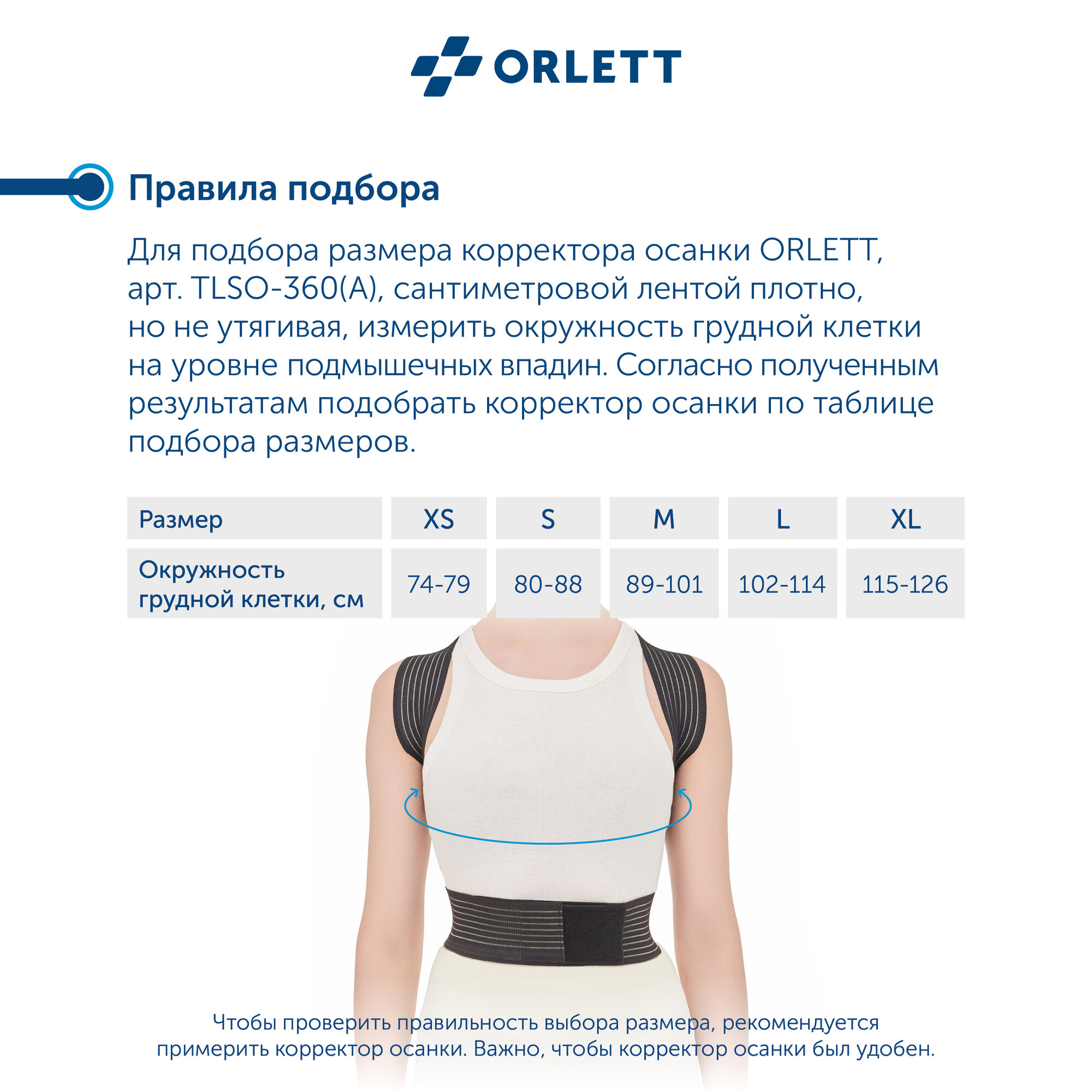 ORLETT Х0052230 Корректор осанки ортопедический Orlett TLSO-360(A), легкой степени фиксации (XL / Чёрный)