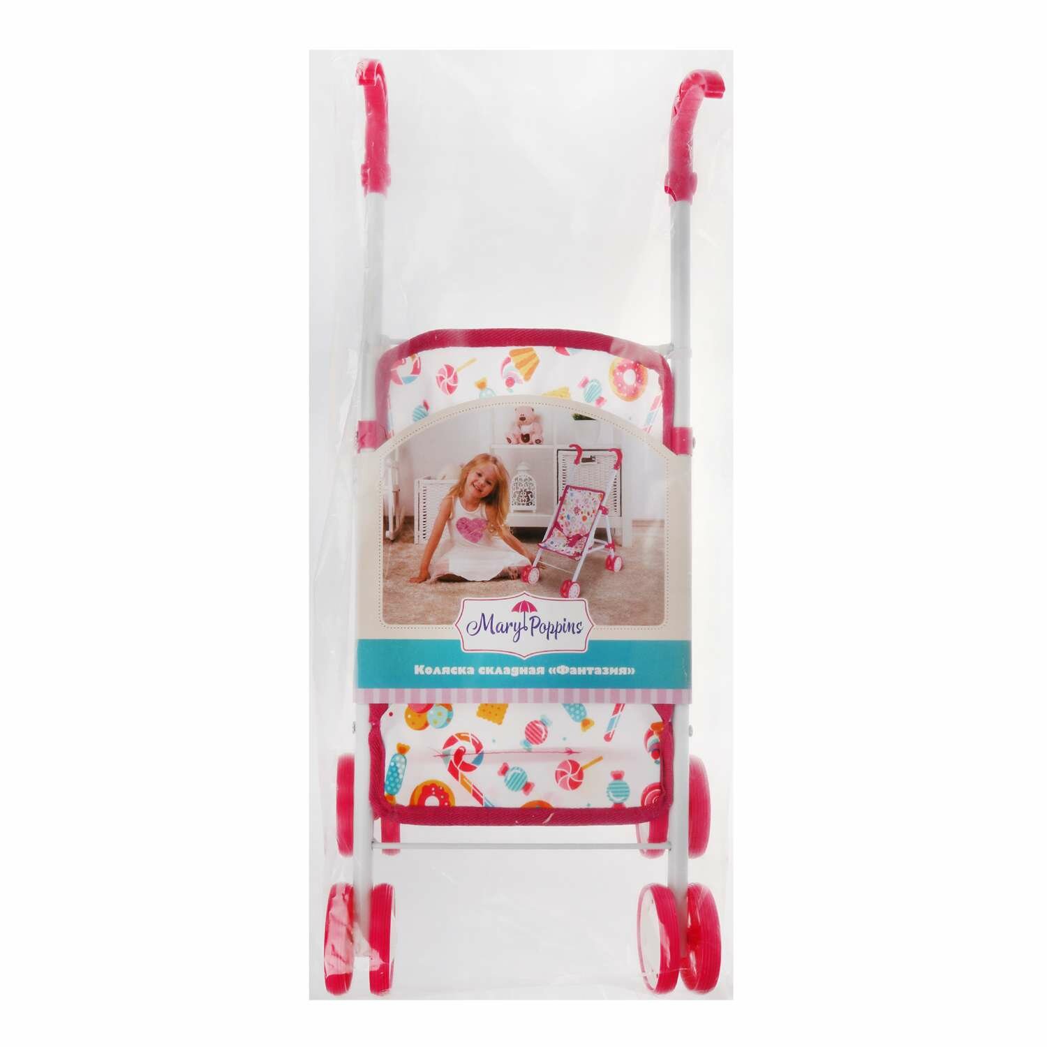 Коляска складная для куклы "Фантазия" малиновая (в асс) Mary Poppins 67325