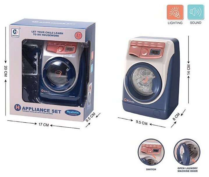 Купить Стиральная машина Appliance Set на батарейках, имитация процесса стирки, вращающийся барабан, подсветка, звук воды, 15х10х8 см