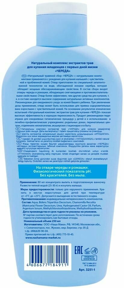 Наша Мама Натуральный комплекс экстрактов трав для купания младенцев с первых дней жизни череда серии "