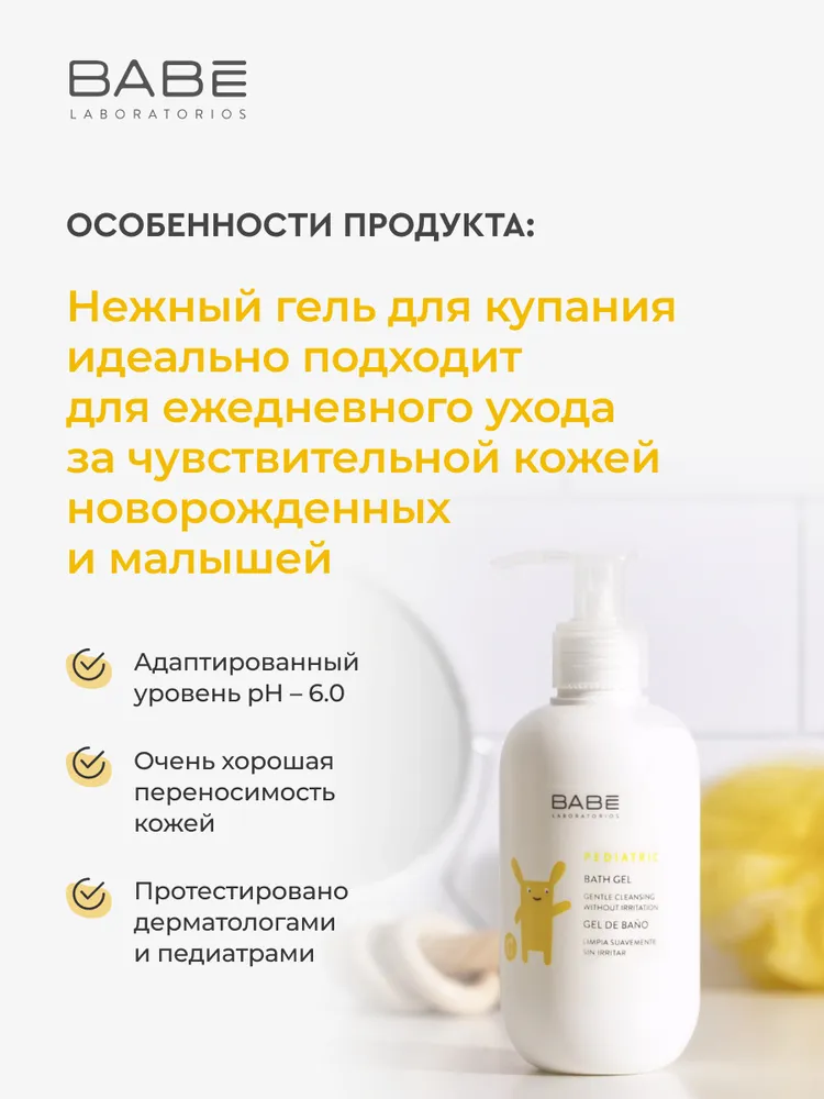 СохранитьГель для купания детский, мягкий, средство для душа для новорожденного малыша гипоаллергенное для девочек и мальчиков 0+, 500 мл BABE Laboratorios Аптека асна интересное: