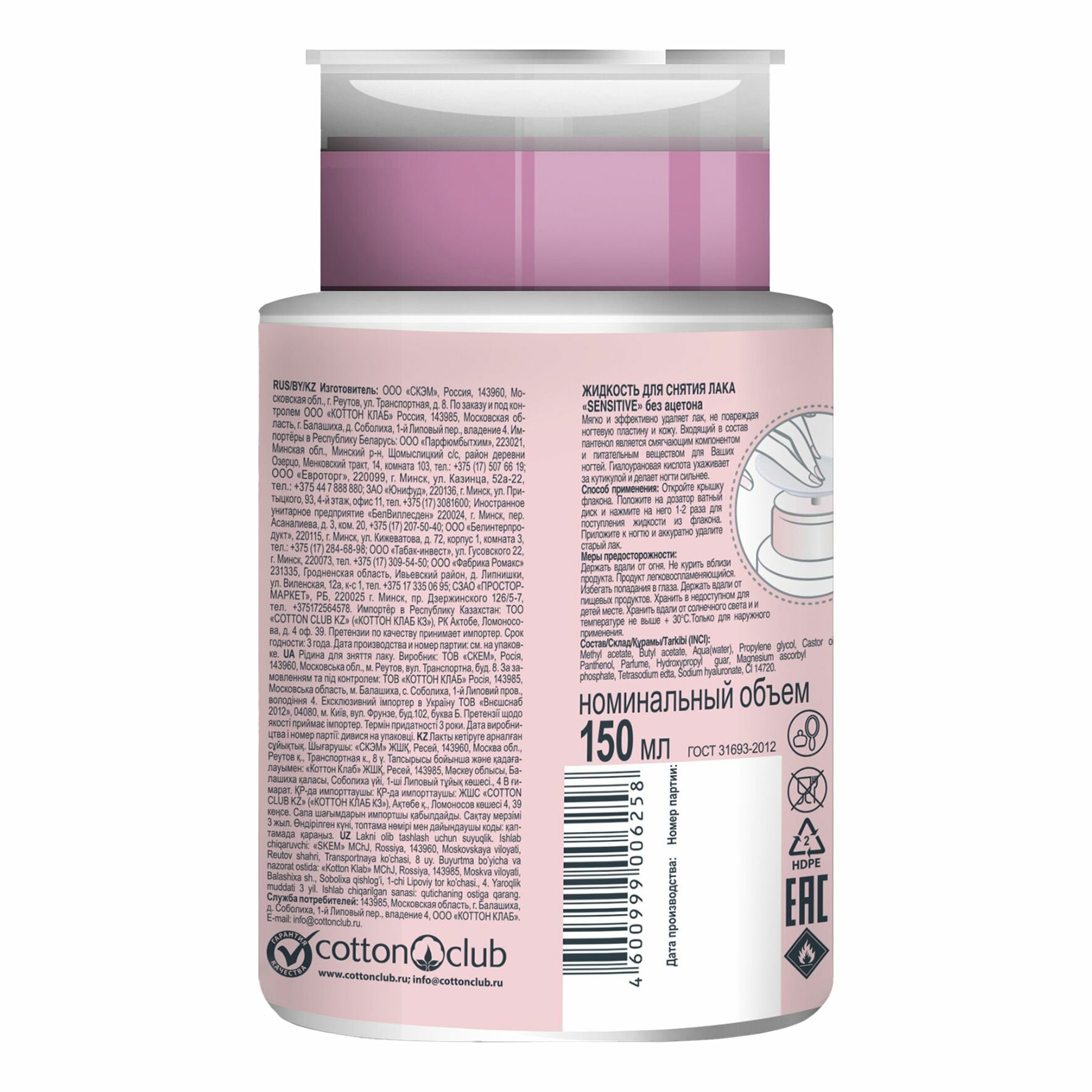 Я самая cредство для снятия лака Sensitive с помпой-дозатором 150мл