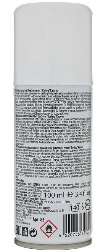 83 Kapous Professional Styling Лак аэрозольный для волос нормальной фиксации 100 мл