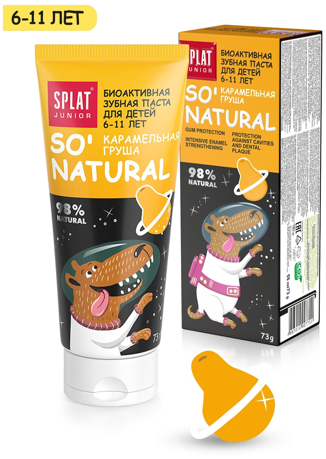 Splat Junior Зубная паста, карамельная груша, 6-11 лет, 73 гр, 1 штука.