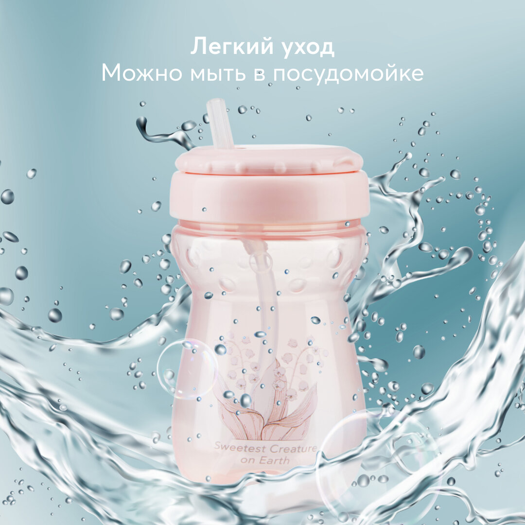14011, Поильник детский с трубочкой Happy Baby, поильник непроливайка детский 360 мл, розовый