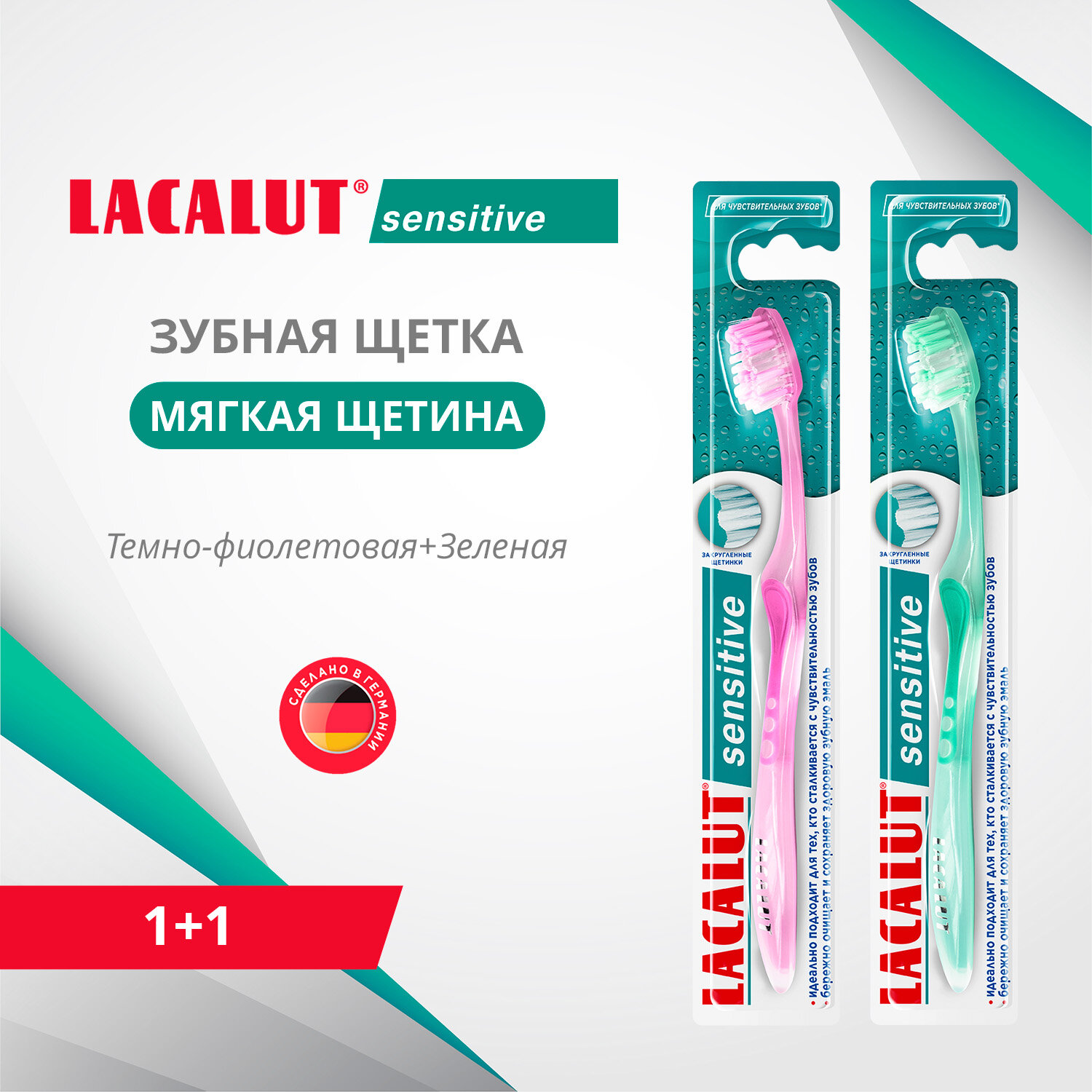 Зубная щетка Lacalut Sensitive, спайка из 2 штук, зеленая и розовая