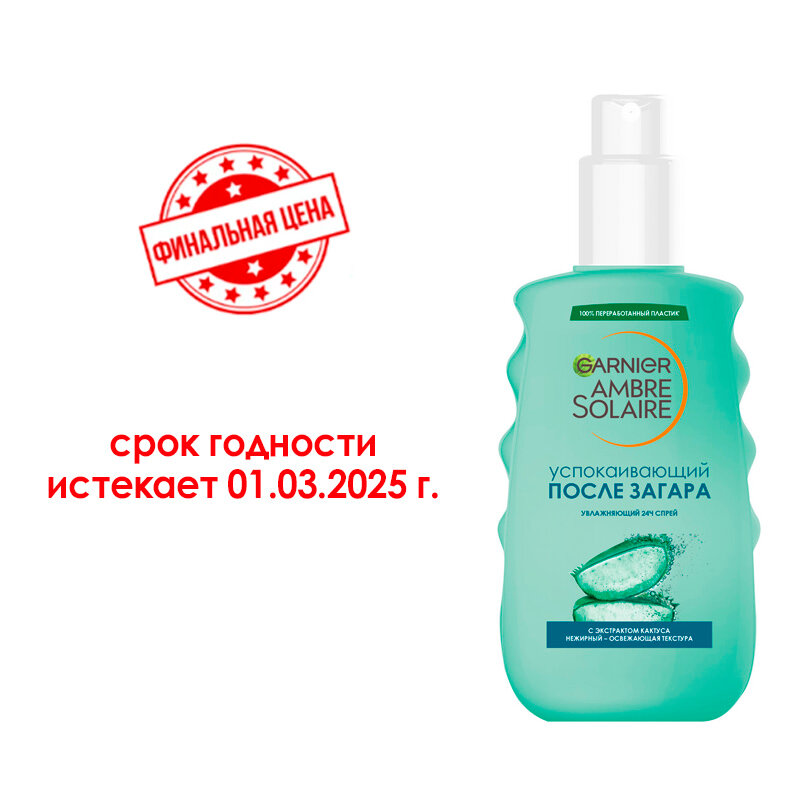 Garnier Освежающий спрей после загара Ambre Solaire, увлажнение 24 ч, успокаивающий, с экстрактом кактуса, 200 мл
