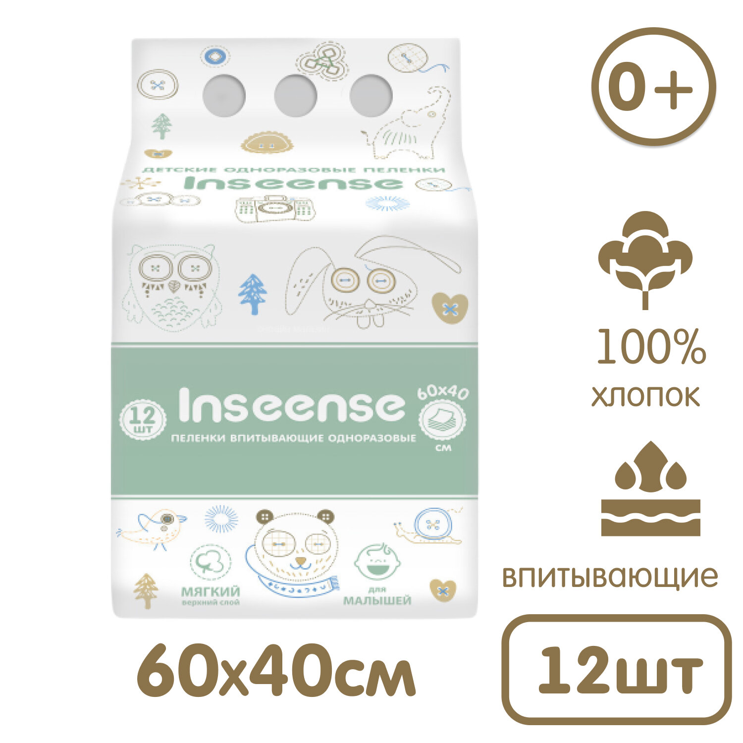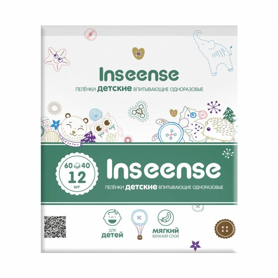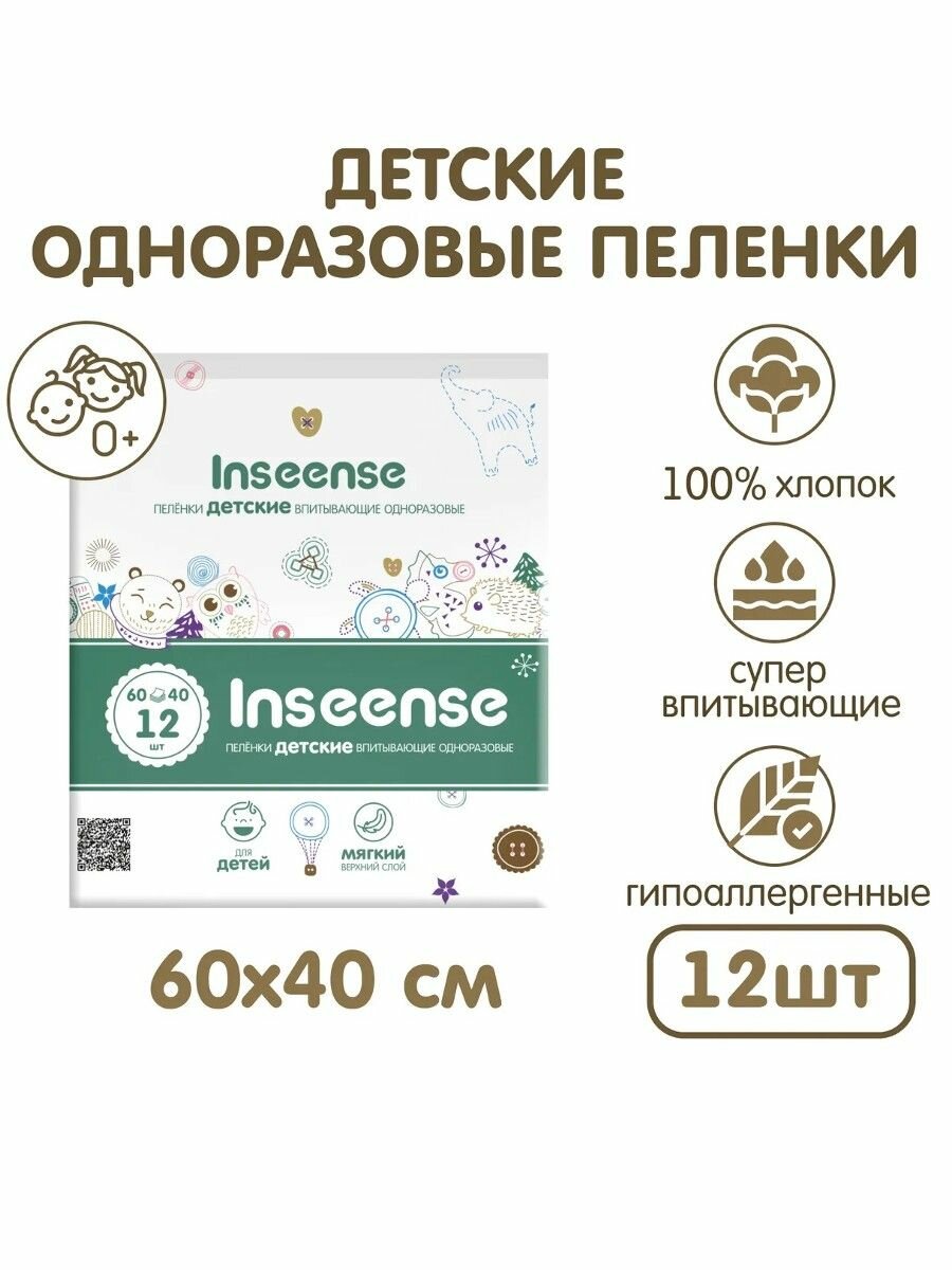 Пеленки одноразовые INSEENSE впитывающие 60х40, 12 штук