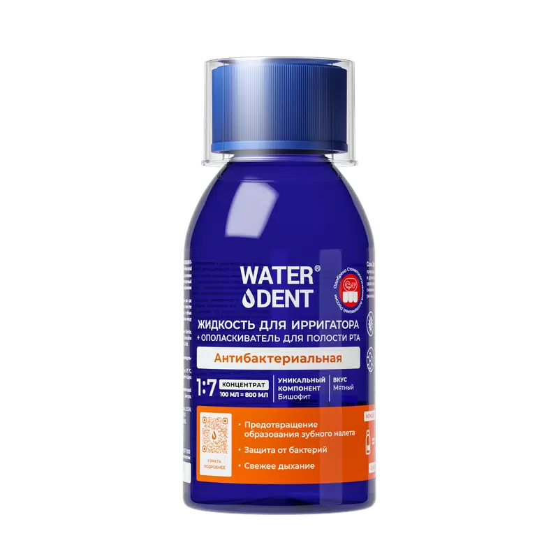 WATERDENT Жидкость для ирригатора + ополаскиватель для полости рта 2в1 Антибактериальная, 100 мл
