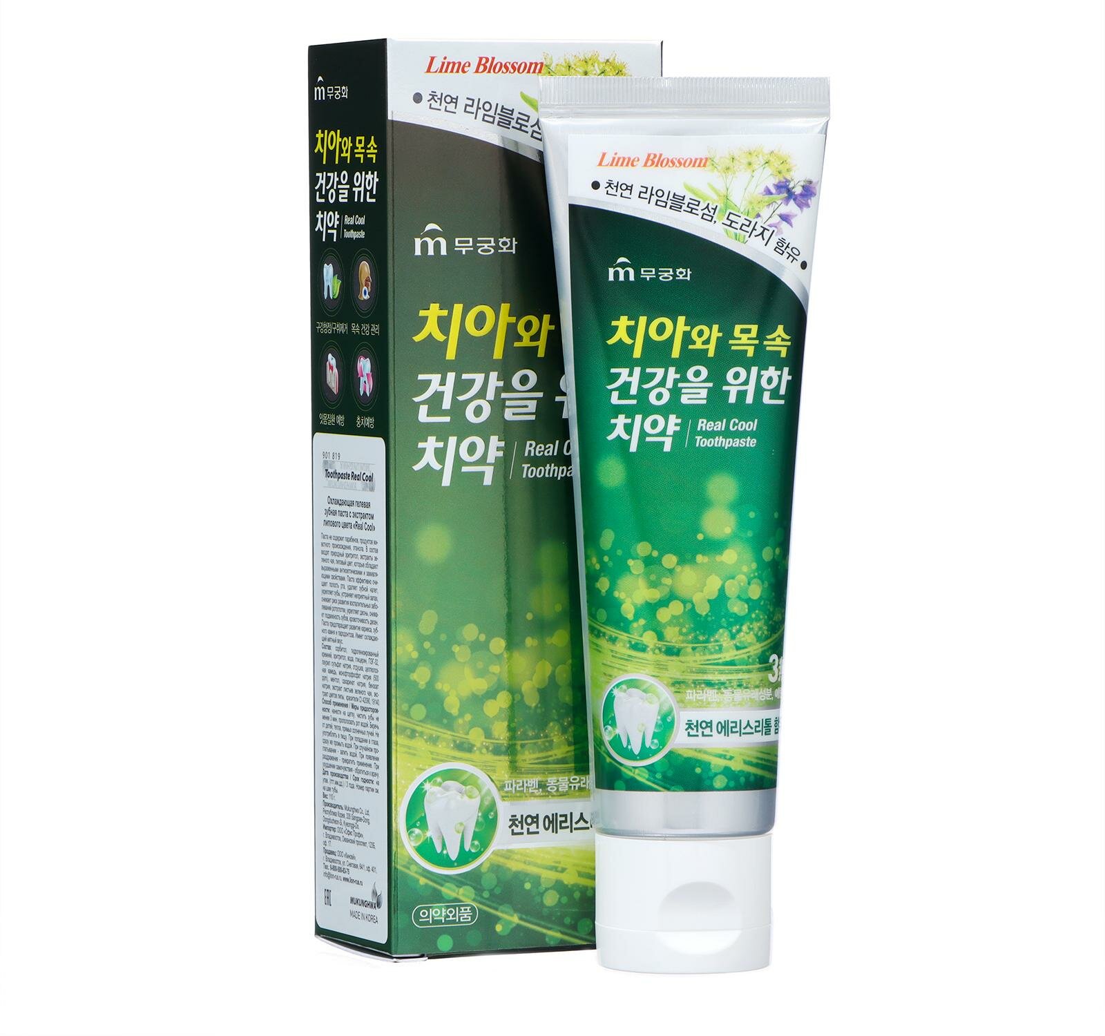 Зубная паста с экстрактом липового цвета Mukunghwa Real Cool Toothpaste 110g