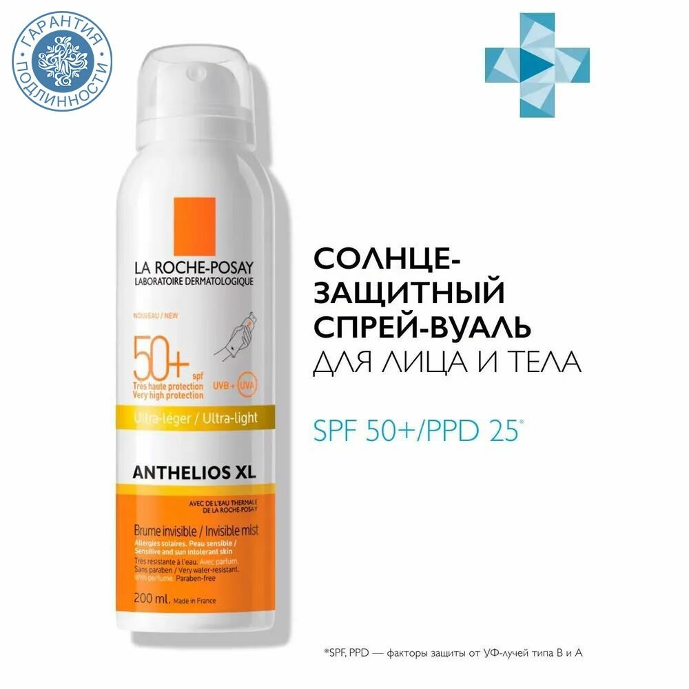 Купить La Roche-Posay ANTHELIOS Солнцезащитный спрей-вуаль для лица и тела SPF 50+, 200 мл