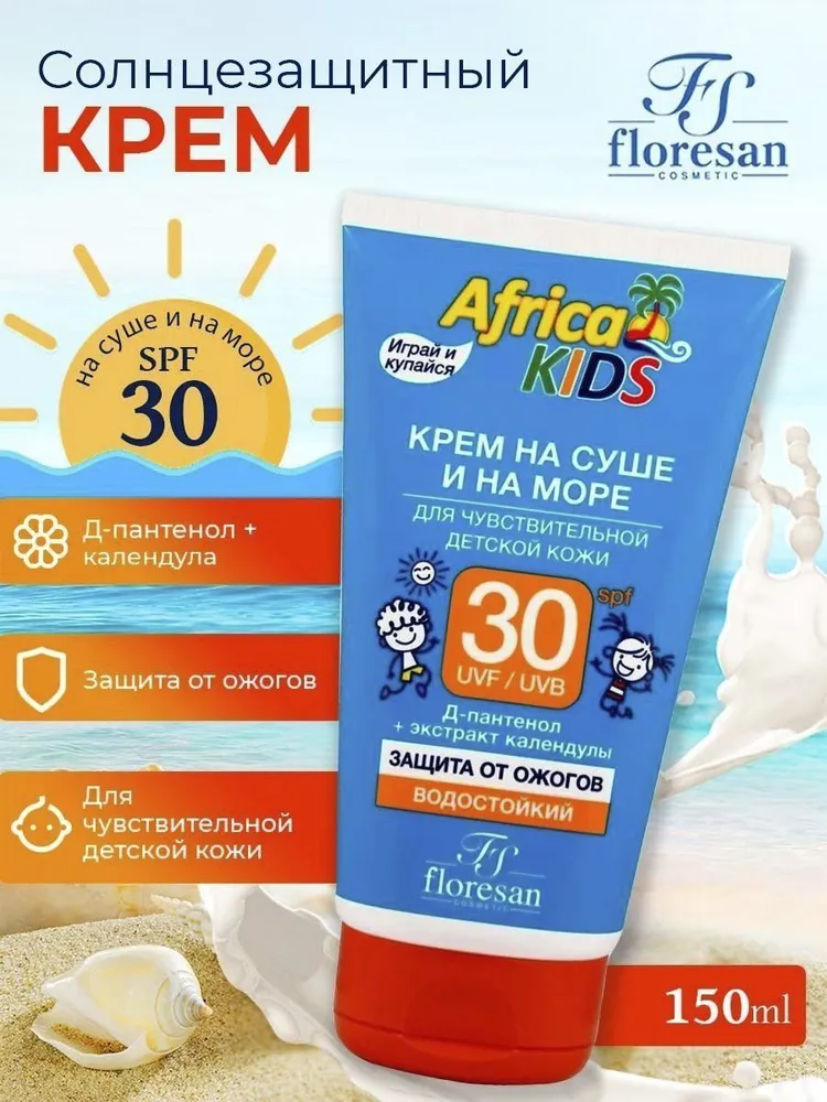 Крем детский защита от солнца на суше и на море (SPF 30) Floresan Africa kids (Флоресан) Ф-410, 150мл х 1шт