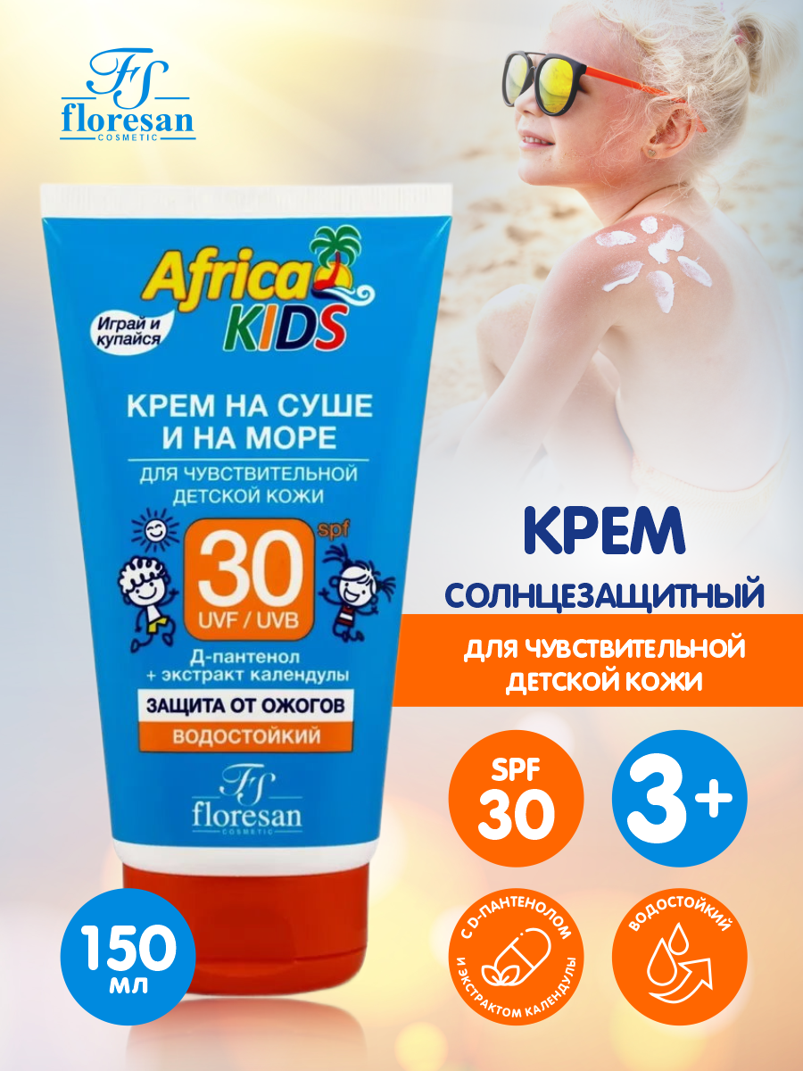 Крем солнцезащитный для детской кожи на суше и на море SPF30 Africa Kids Floresan/Флоресан 150мл