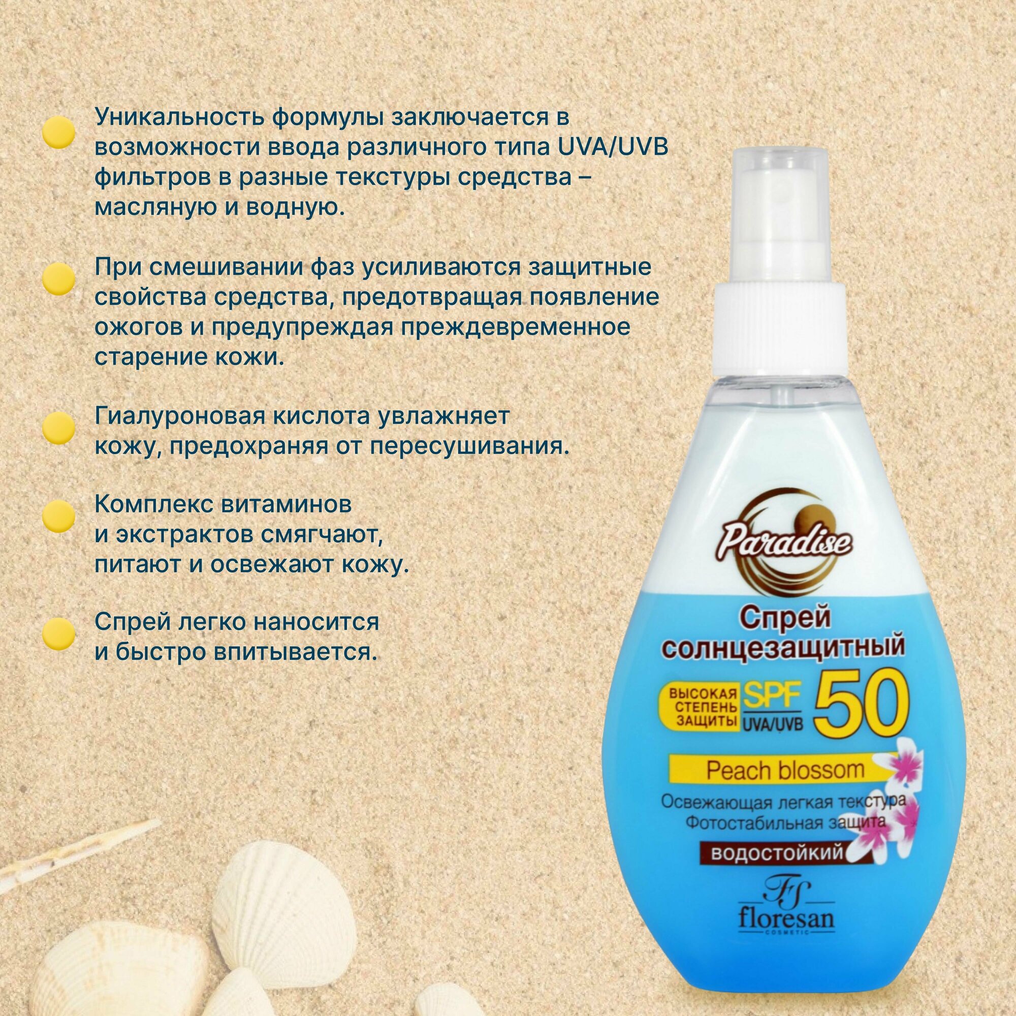 Солнцезащитный спрей Floresan SPF 50 водостойкий, двухфазный, 160 мл