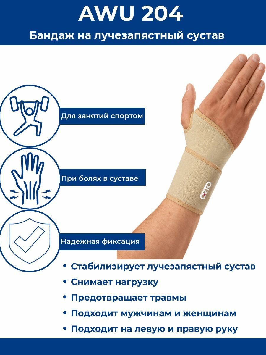 ORTO Бандаж лучезапястный AWU 204, размер универсальный, бежевый