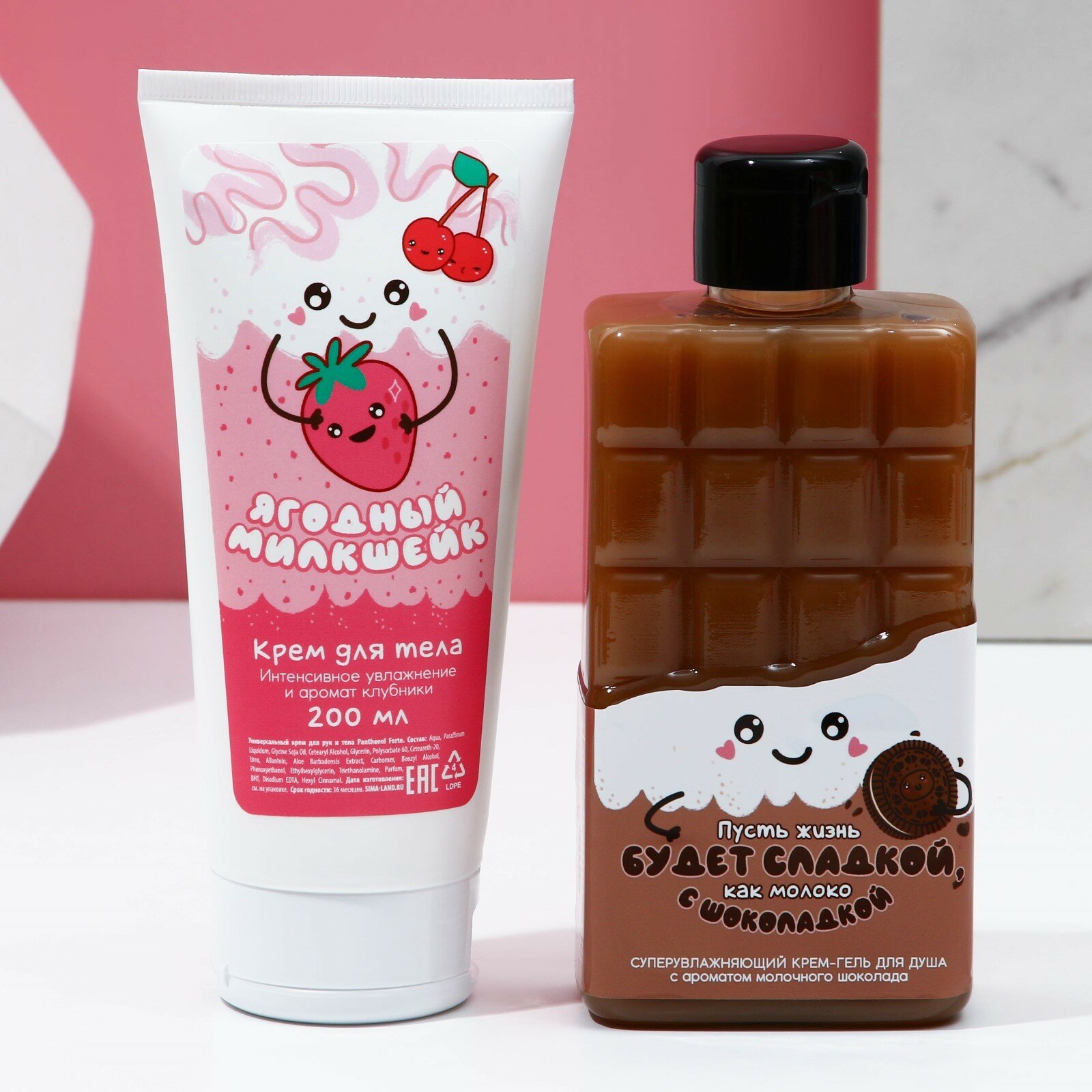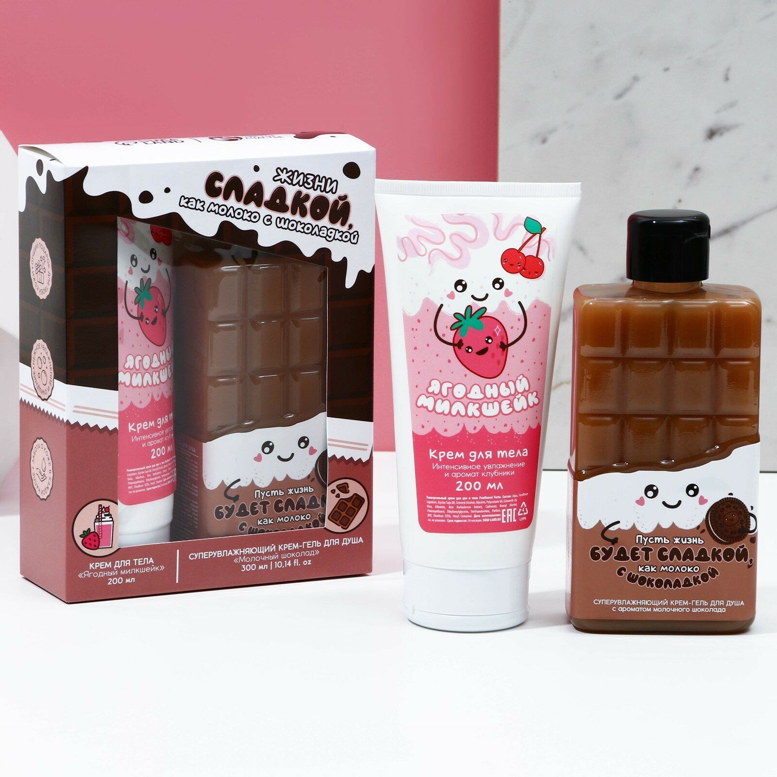 Подарочный набор косметики «Пусть жизнь будет сладкой!», гель для душа и крем для тела, чистое счастье интересное:
