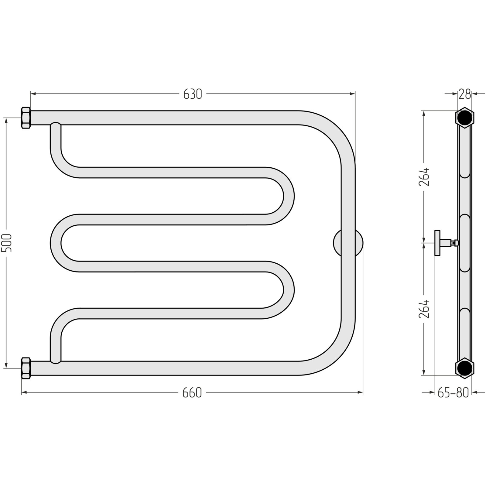 Полотенцесушитель водяной Сунержа 00-0011-5065 Лира Полотенцесушитель водяной 500х650 мм, Н. Г. 1", без покрытия
