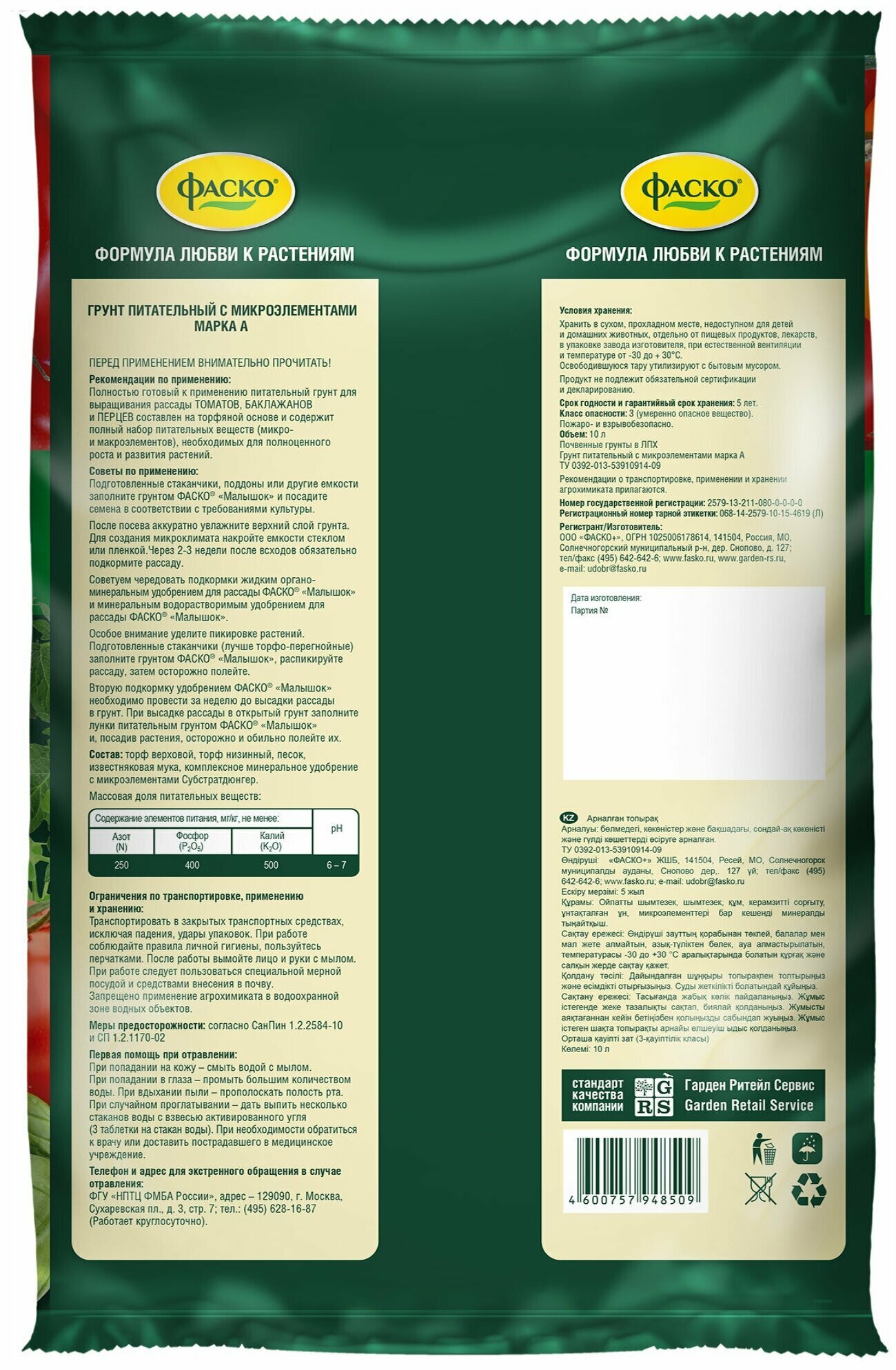 Грунт Фаско Малышок для томатов и перцев 10л
