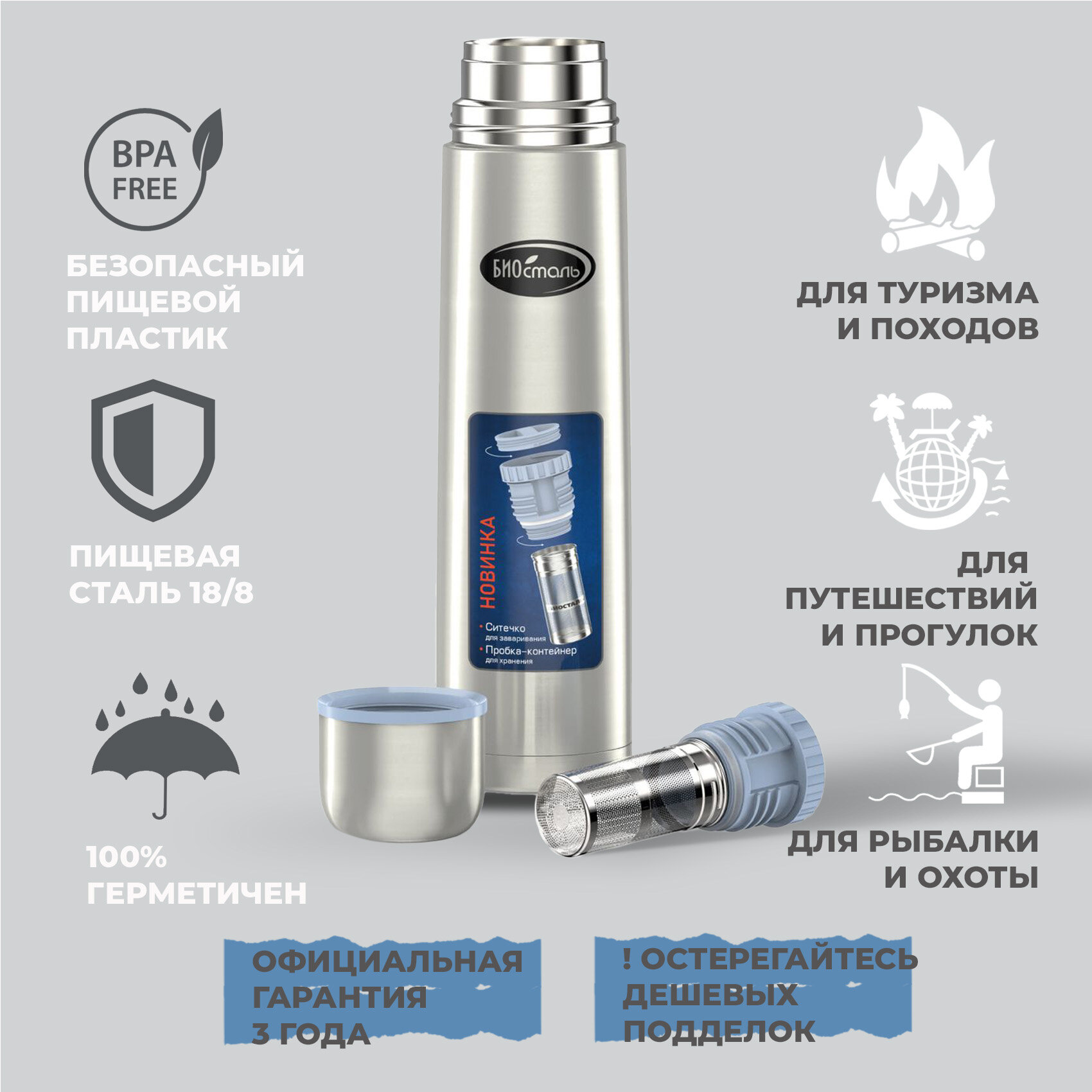 Термос биосталь NВ-350Z, пробка с ситечком