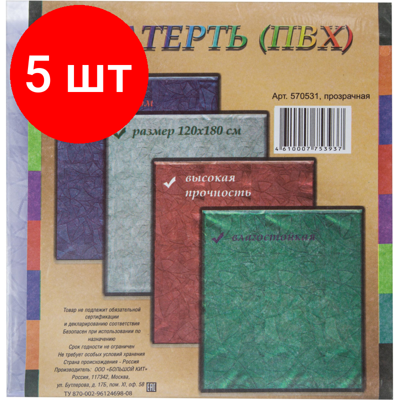 Комплект 5 штук, Скатерть ПВХ 120*180см, прозрачная интересное: