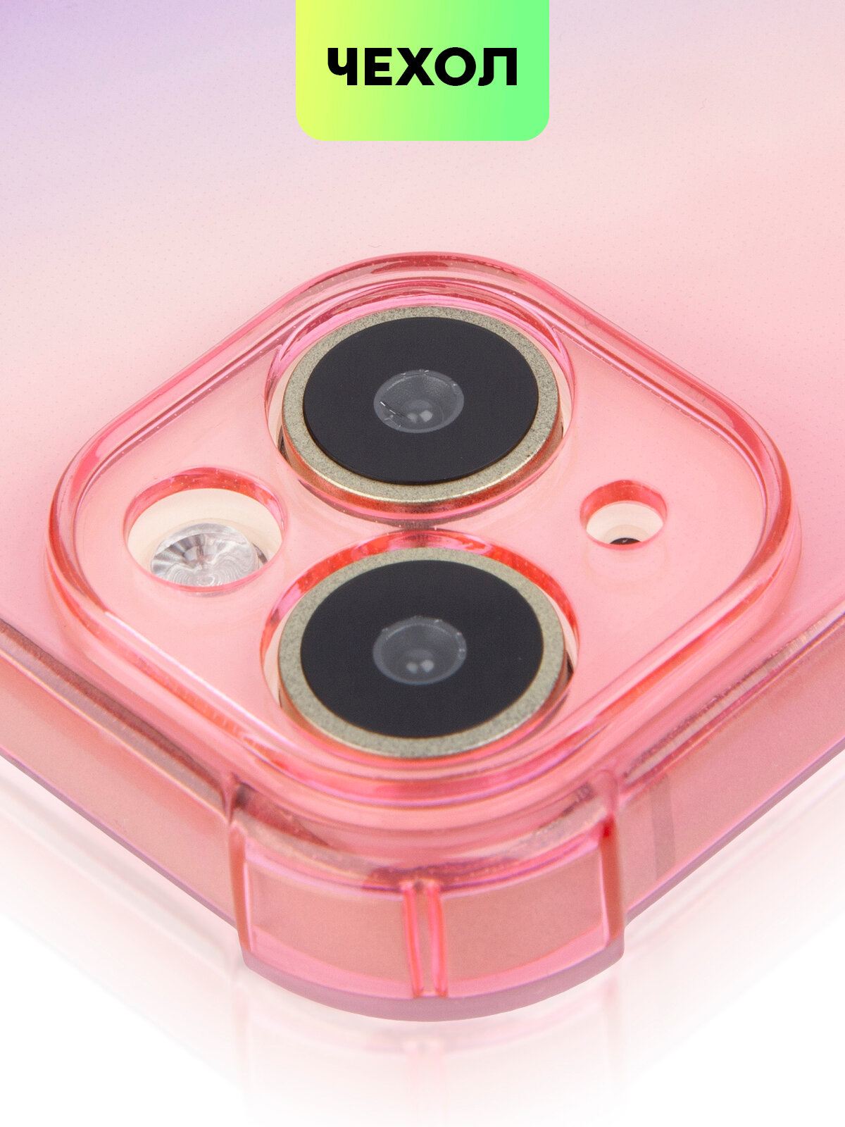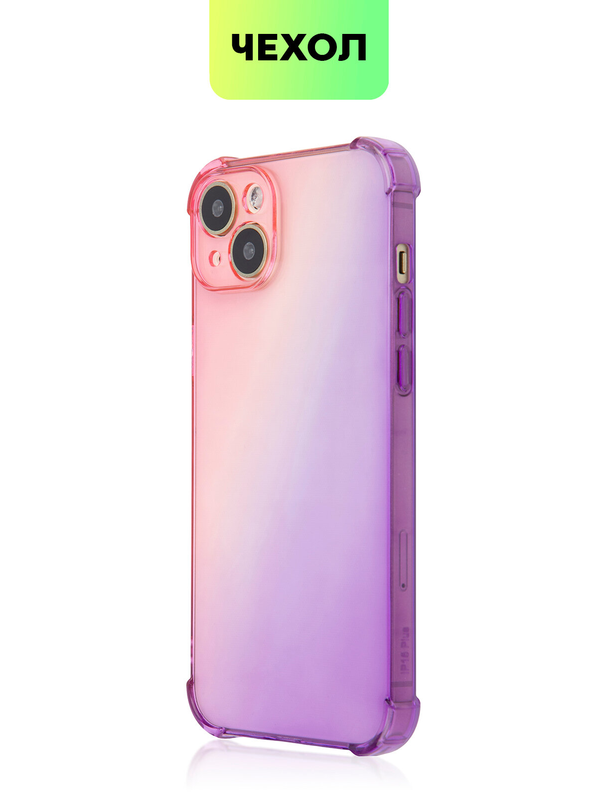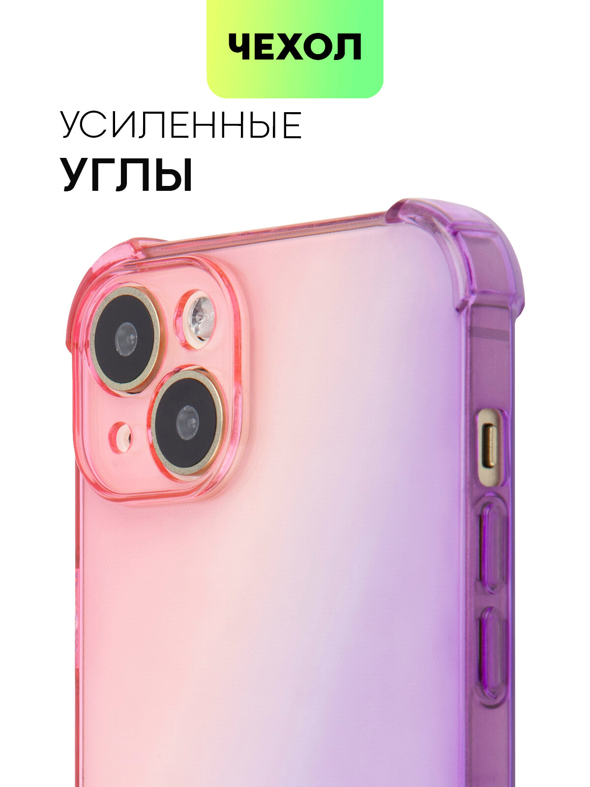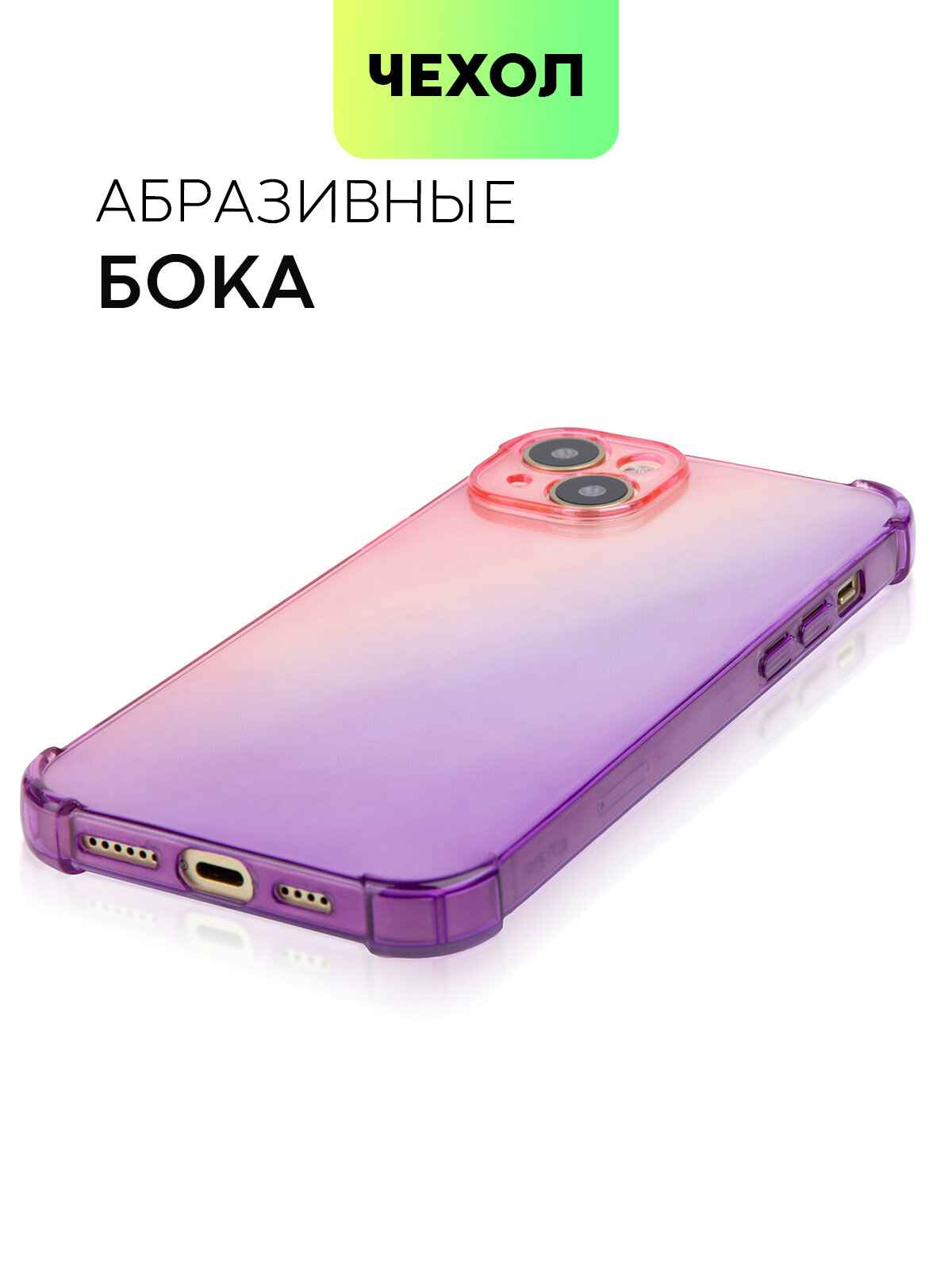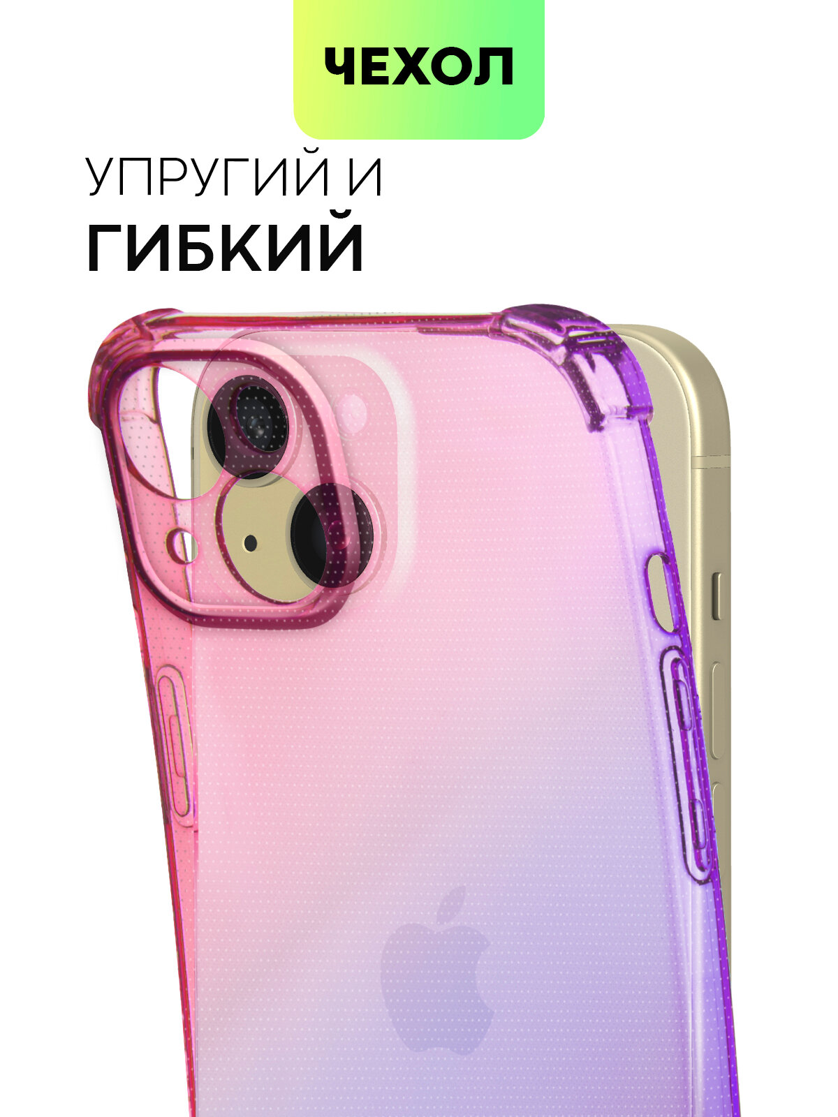 СохранитьПротивоударный чехол для Apple iPhone 15 Plus (Эпл Айфон 15 Плюс) силиконовый чехол, усиленный, защита камер, прозрачный, фиолетовый розовый, BROSCORP интересное: