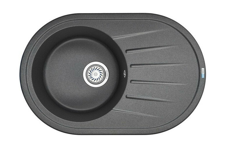 Кухонная мойка кварцевая Granula ST-7601 овальная с крылом, стандарт, чаша D 390, цвет черный (7601bl)