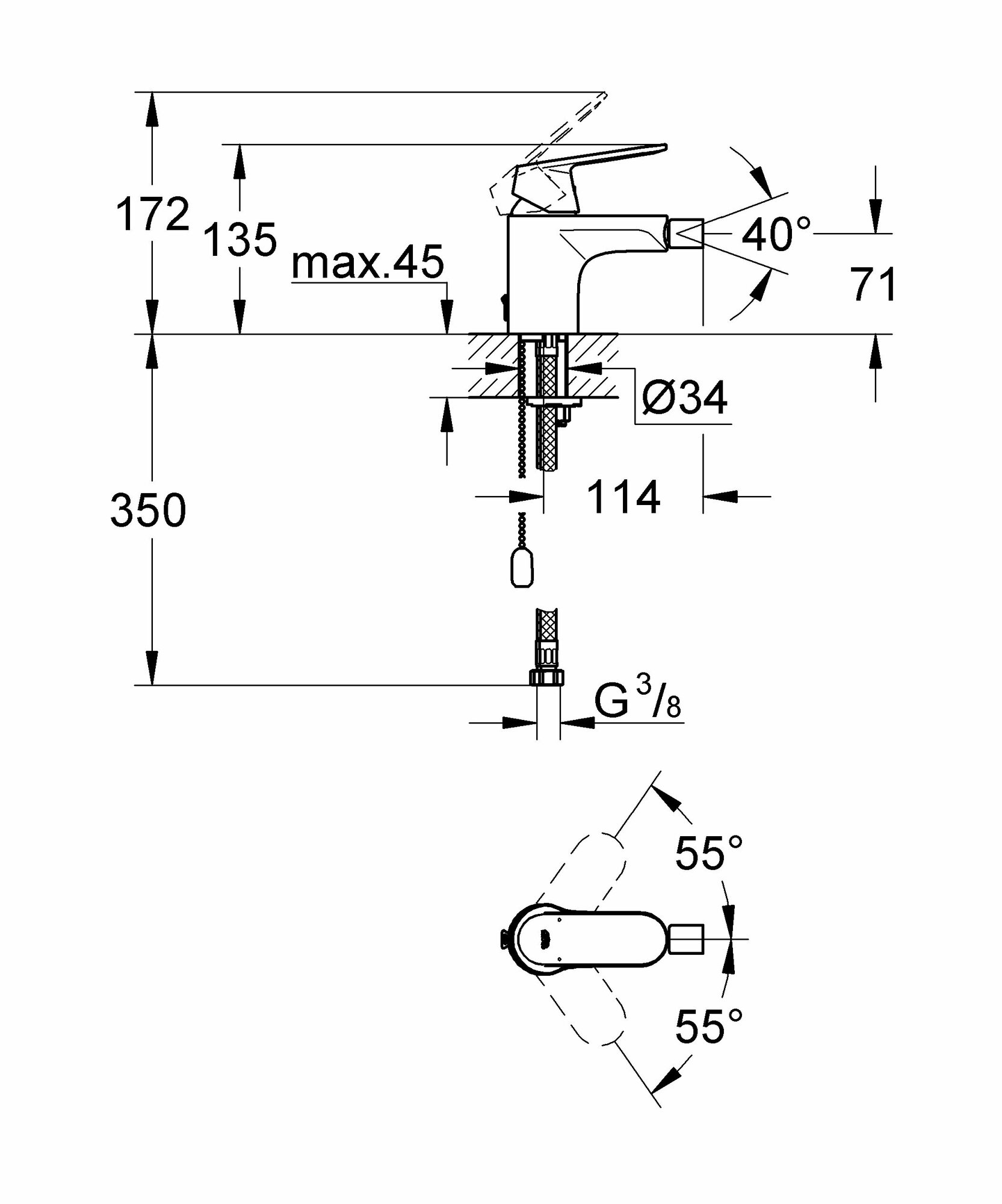 Смеситель для биде однорычажный, с цепочкой, хром, Grohe Eurosmart Cosmopolitan 32840000