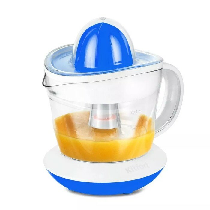 Купить Соковыжималка Kitfort КТ-1148-3, для цитрусовых, 25 Вт, 0.7 л, 54 об/мин, бело-синяя