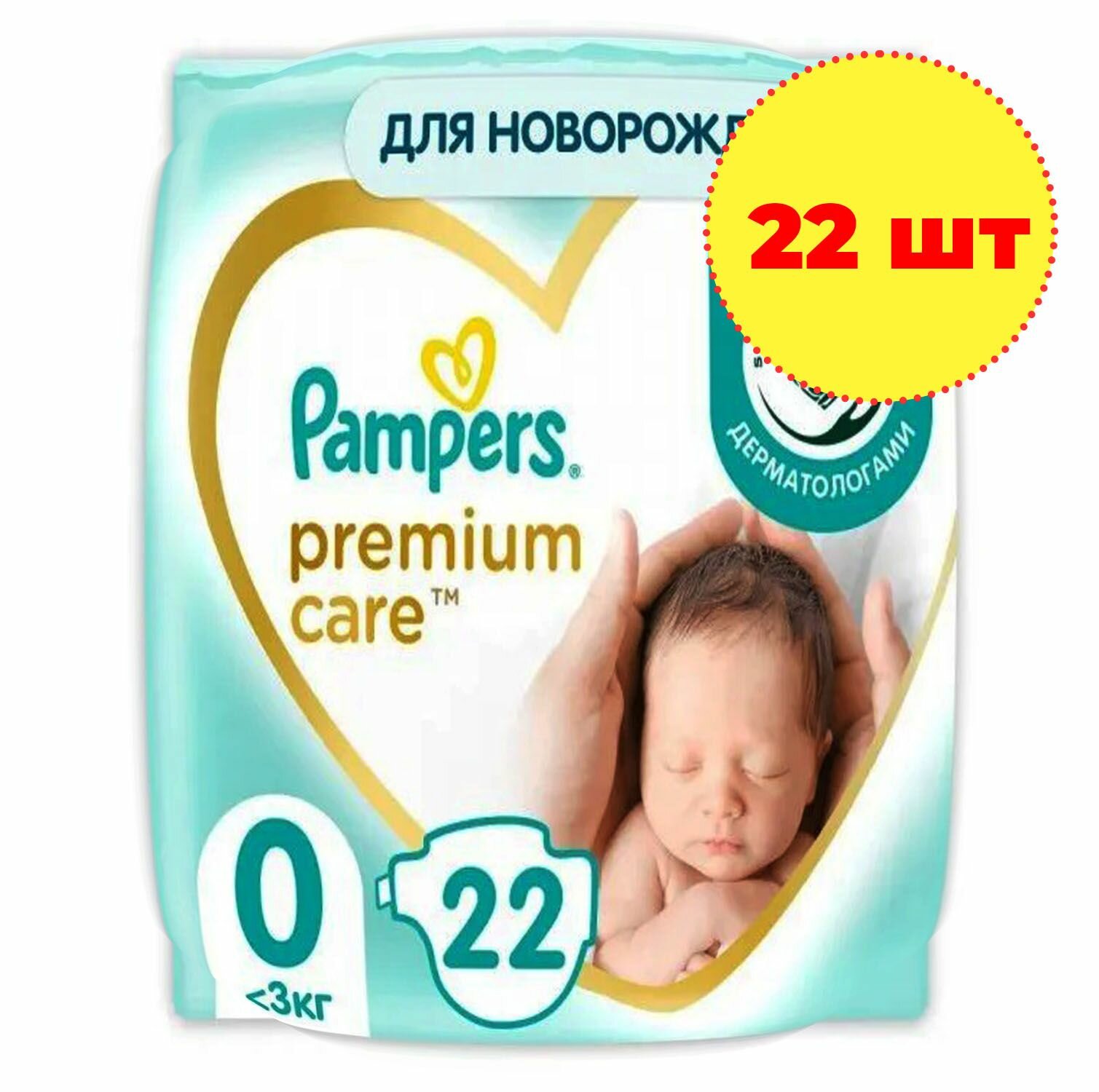 Подгузники Pampers Premium Care для новорожденных от 1,5 до 2,5 кг, 0 размер, 22 шт