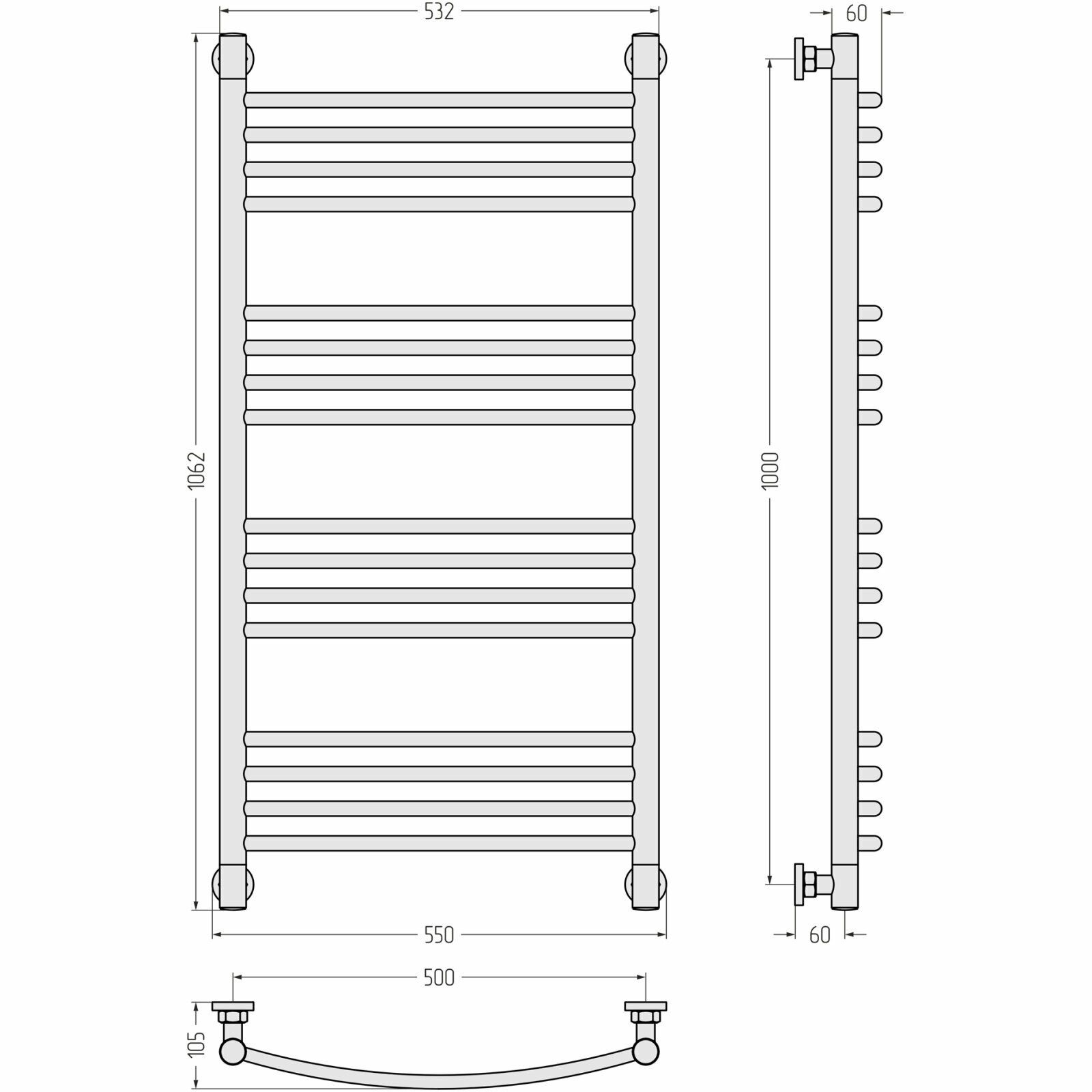 Водяной полотенцесушитель Сунержа Богема+ (выгнутая) 1000x500 арт. 00-0221-1050
