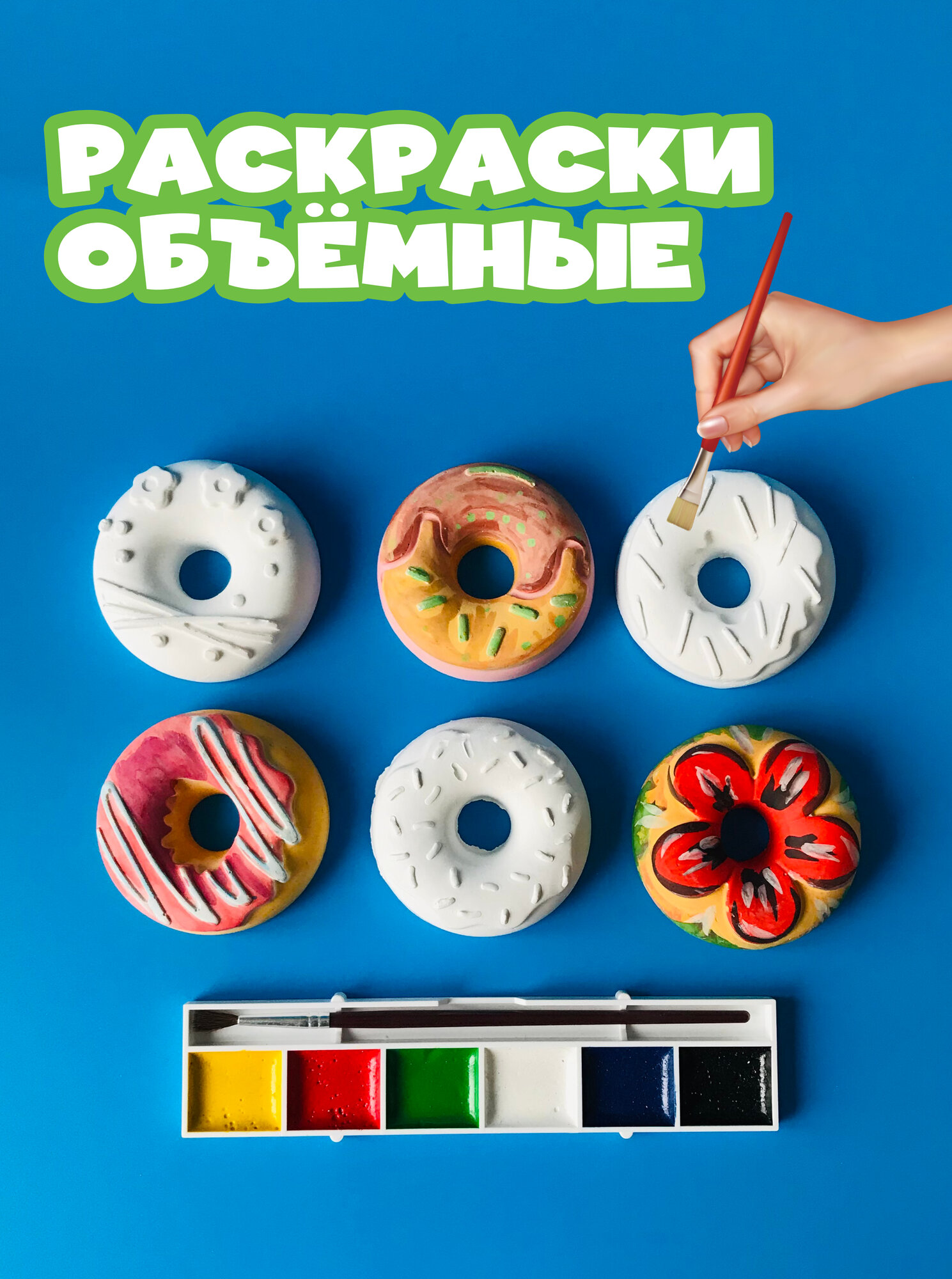 Купить Объемные раскраски пончики / многоразовая 3D развивашка фигурки 7 шт, кисточка, краски / Творческая мастерская Сделай Сам