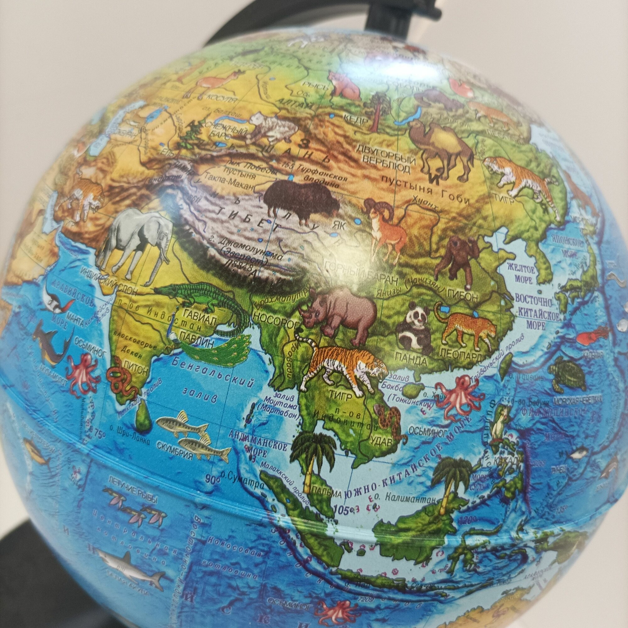 Глобус Земли зоогеографический, детский, диаметр 21 см, на черной подставке (К012100204)